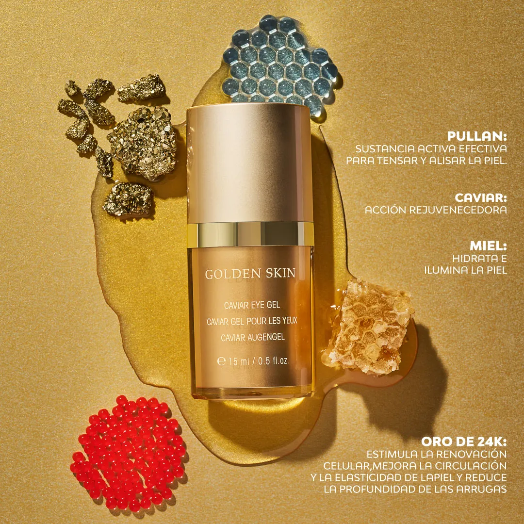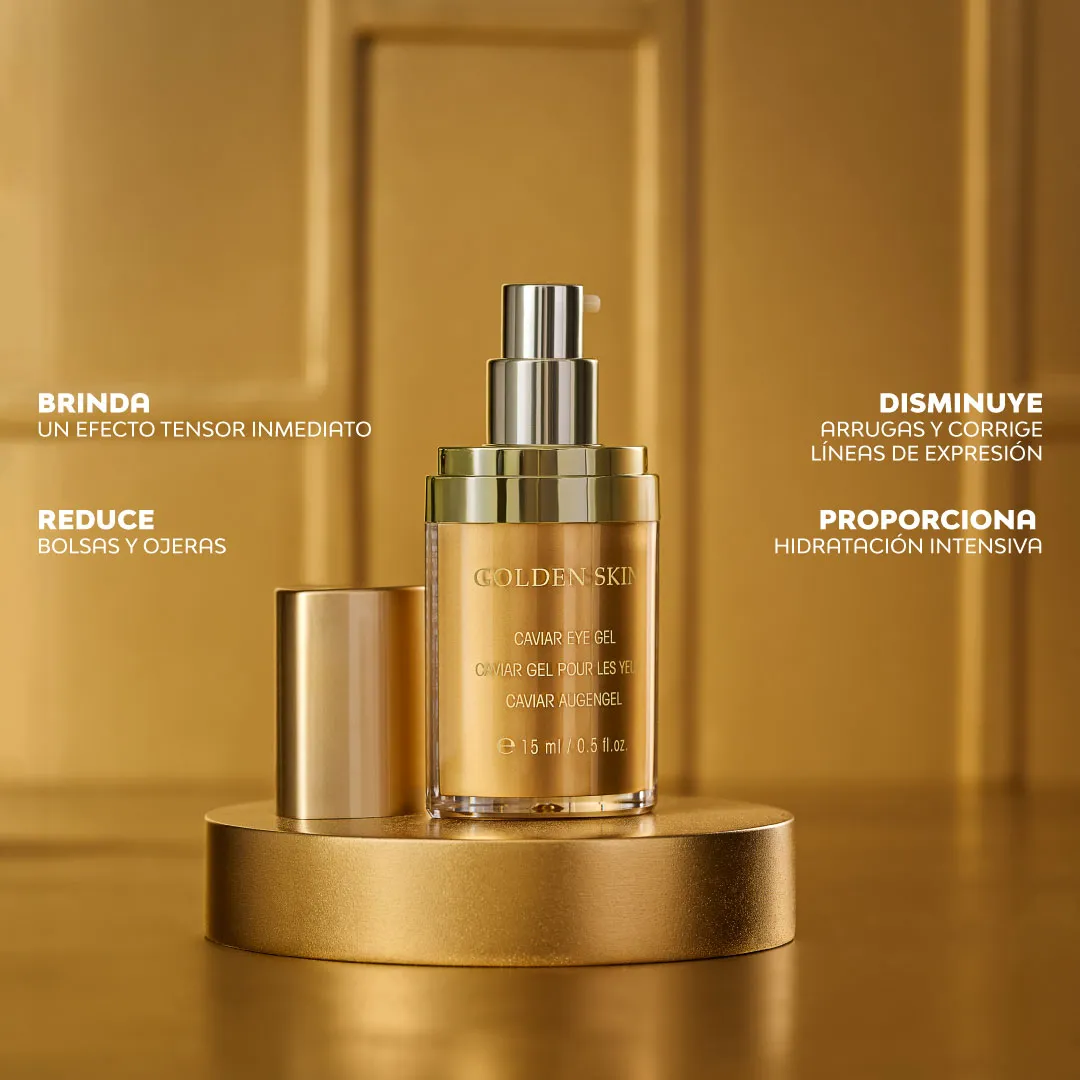 El complejo de caviar dorado combinado con Permalan, un ingrediente altamente efectivo para reafirmar la piel, suaviza, relaja y refresca instantáneamente la zona estresada alrededor de los ojos. La refrescante consistencia en gel proporciona una máxima hidratación, relaja y calma los párpados hinchados, haciendo que el área alrededor de los ojos luzca visiblemente más firme y fresca con un resplandor de juventud.