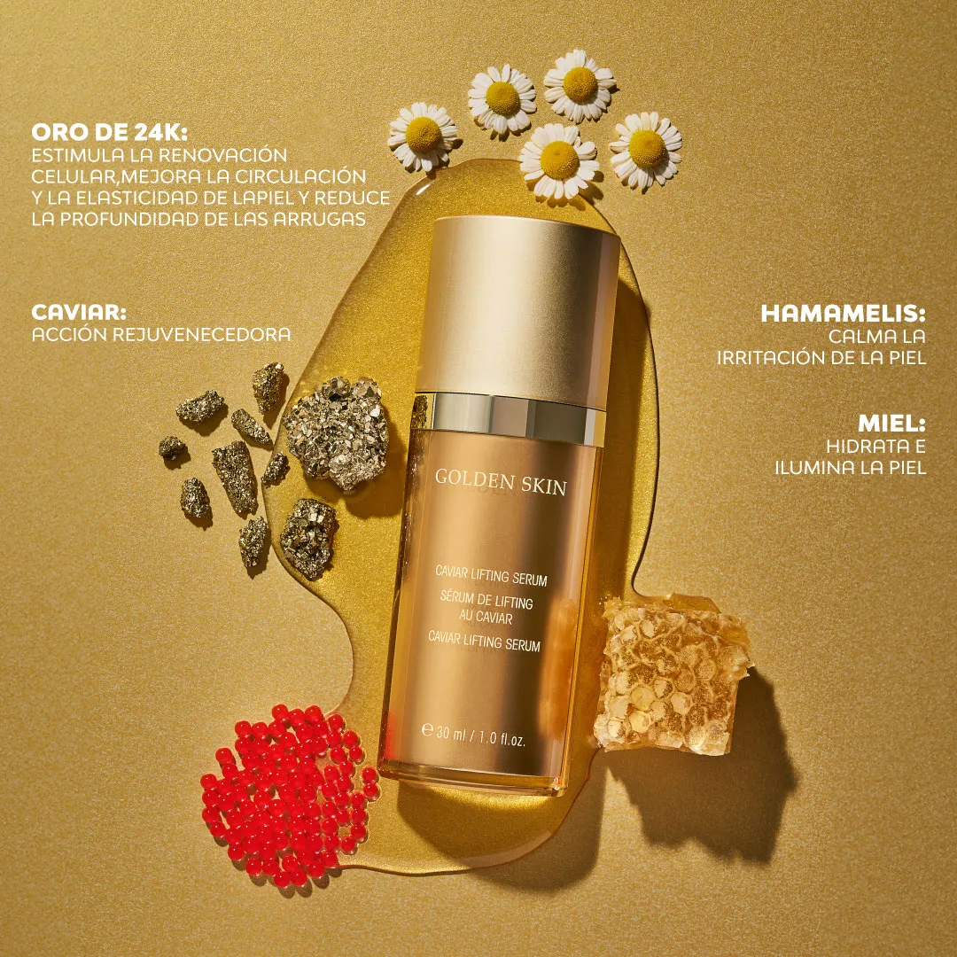 Oro: Incluso en el antiguo Egipto, los eruditos y faraones juraban por el poder del oro como un elixir de belleza. El oro activa la regeneración celular y restablece la elasticidad. El brillo de las más finas partículas de oro hace que la piel brille como el sol y que las pequeñas arrugas y líneas desaparezcan visualmente.
