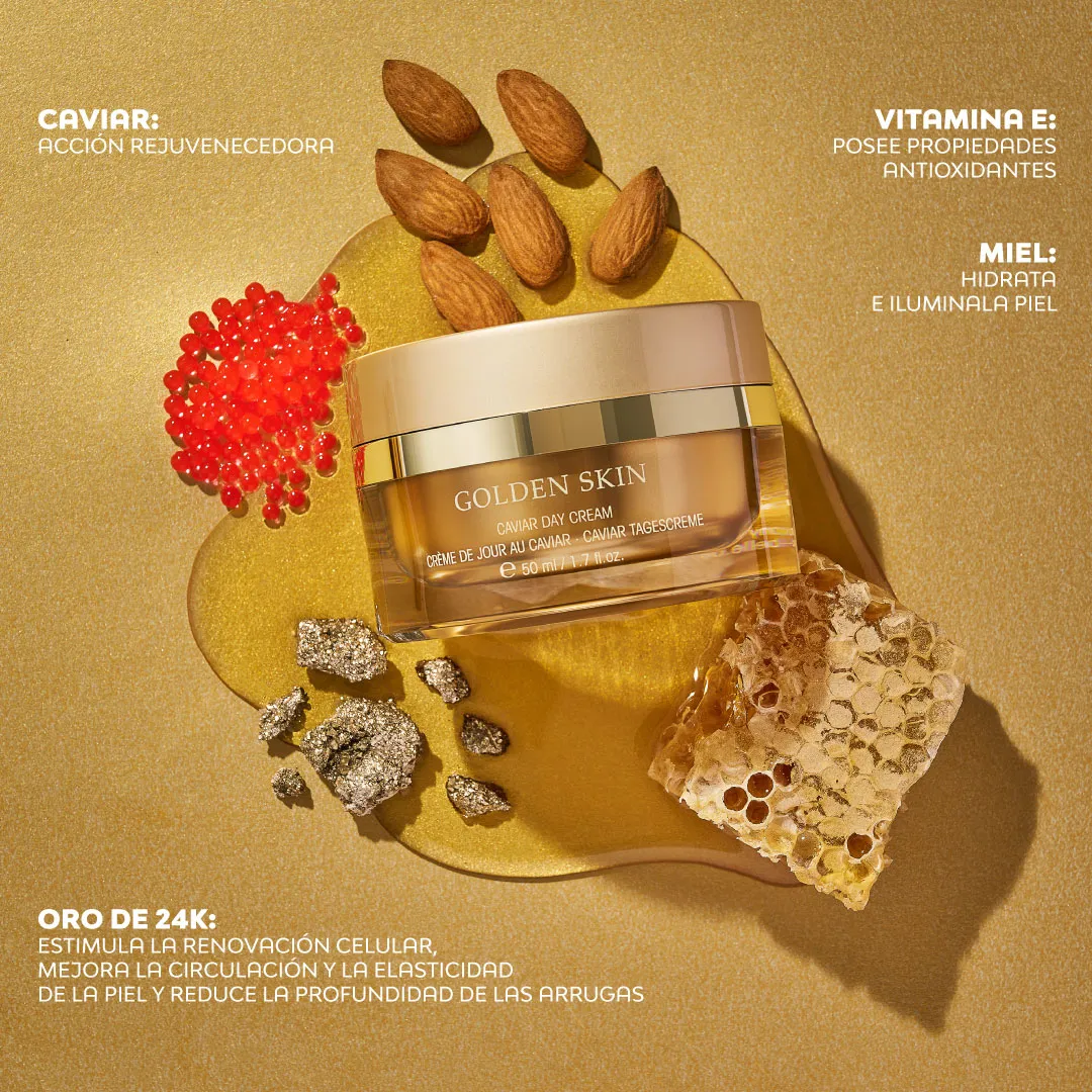 Oro: Incluso en el antiguo Egipto, los eruditos y faraones juraban por el poder del oro como un elixir de belleza. El oro activa la regeneración celular y restablece la elasticidad. El brillo de las más finas partículas de oro hace que la piel brille como el sol y que las pequeñas arrugas y líneas desaparezcan visualmente.