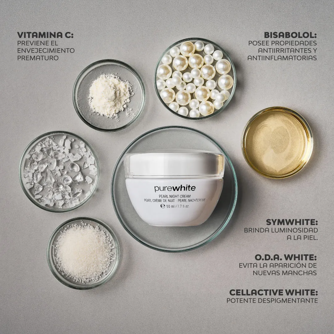 CellActive White: Actúa en dos niveles. El extracto de berro y el complejo de Zinc bloquean la tirosinasa, la enzima clave en la formación de melanina. La vitamina B3 y el Factor de Impulso Celular Esencial afectan el transporte de la melanina. La vitamina B3 inhibe la distribución de melanina en los queratinocitos. El Factor de Impulso Celular Esencial promueve la formación de proteínas que contribuyen a la distribución uniforme del pigmento en la piel.